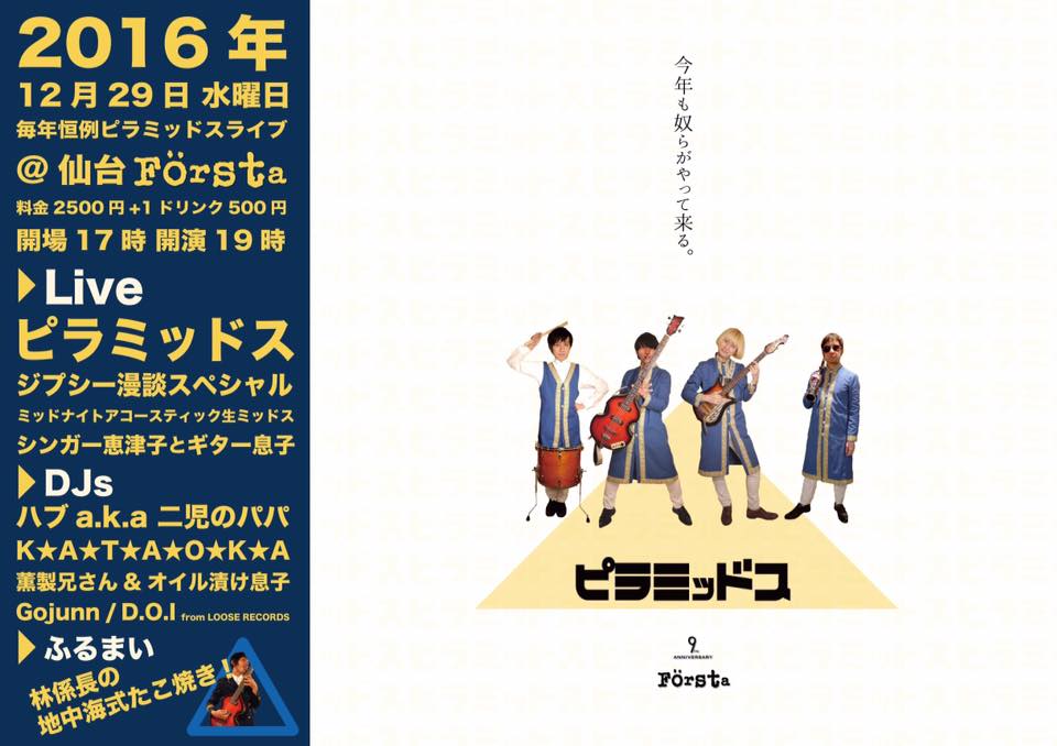 でで、ピラミッドス2016年の〆ライブは仙台ファシュタにて!